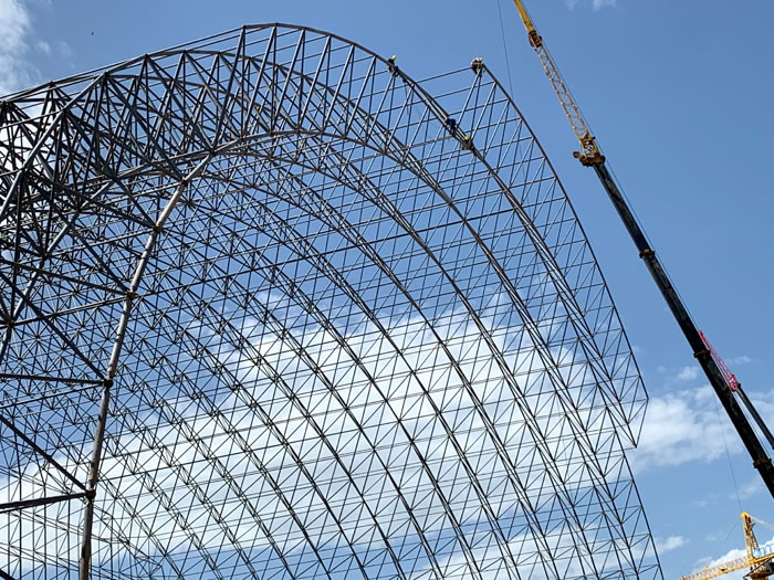 (2)网架加工前应对现场尺寸进行复测,确认无误后方可进行加工、安装;网架制作、运输、安装应遵守《空间网格结构技术规程》JGJ7-2010、《钢网架自贡螺栓球节点》JG/T 10-2009、《钢网架自贡螺栓球节点用高强度螺栓》 GB/T 16939-2016、《自贡钢结构自贡工程自贡施工规范》 GB50755-2012、《自贡钢结构自贡工程自贡施工质量验收标准》 GB50205-2020。
